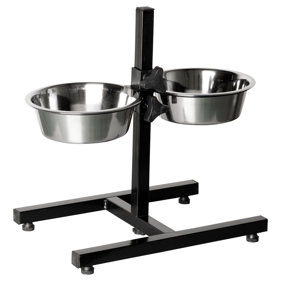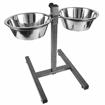 Регулируема Стойка за Храна с 2 Купи от Неръждаема Стомана – 28 см, Антрацит