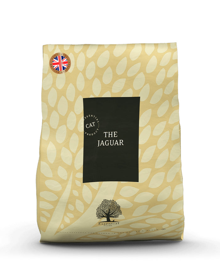 Най-важното нещо за ESSENTIAL FOODS е нашите храни да помогнат на вашата котка да бъде здрава и да  живее пълноценно и  възможно най-дълго време. ESSENTIAL the JAGUAR е специална храна без зърно за котки и котенца от всички породи и размери. Приготвихме храна, която  не само,че ще се хареса на вашата котка, но тази храна е много близо до това, с което котката ви  би се хранила в природата. Това е най-вкусната храна за котки приготвяна някога. Съставена от над 95% от нашите свободно отглеждани Грессингамски патици, регионални Ross & Cobb пилета, Шотландска сьомга, дъгова пъстърва и много питателни пресни яйца. Няма съмнение, че това е НАЙ-ДОБРАТА храна.
